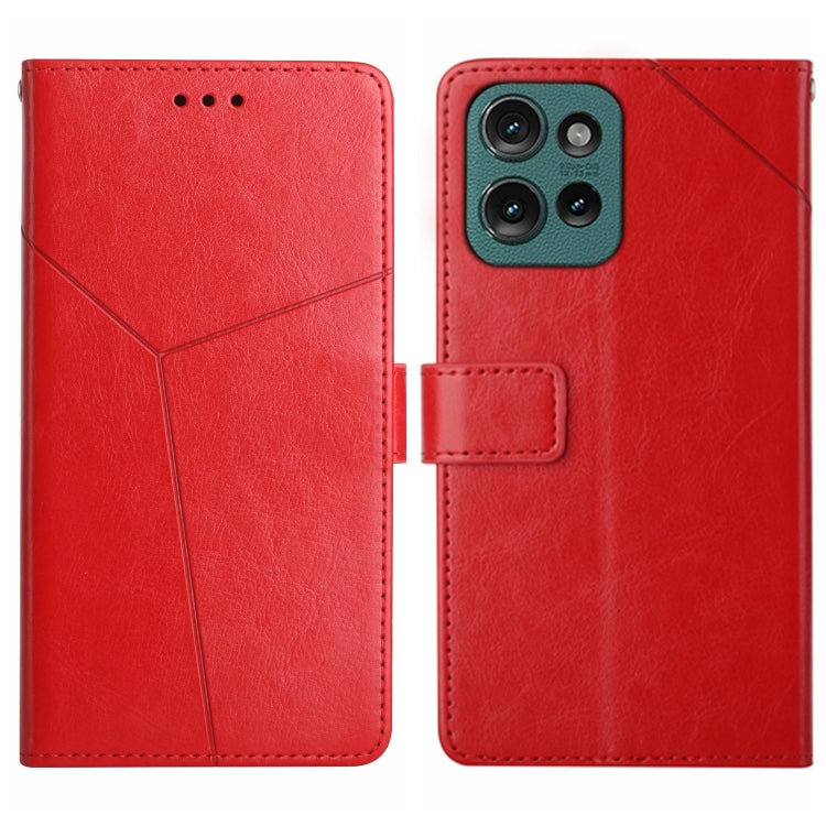 Funda de Cuero con Tapa y Patrón en Forma de Y para Motorola Moto G 5G 2025 Ht01 (Rojo)