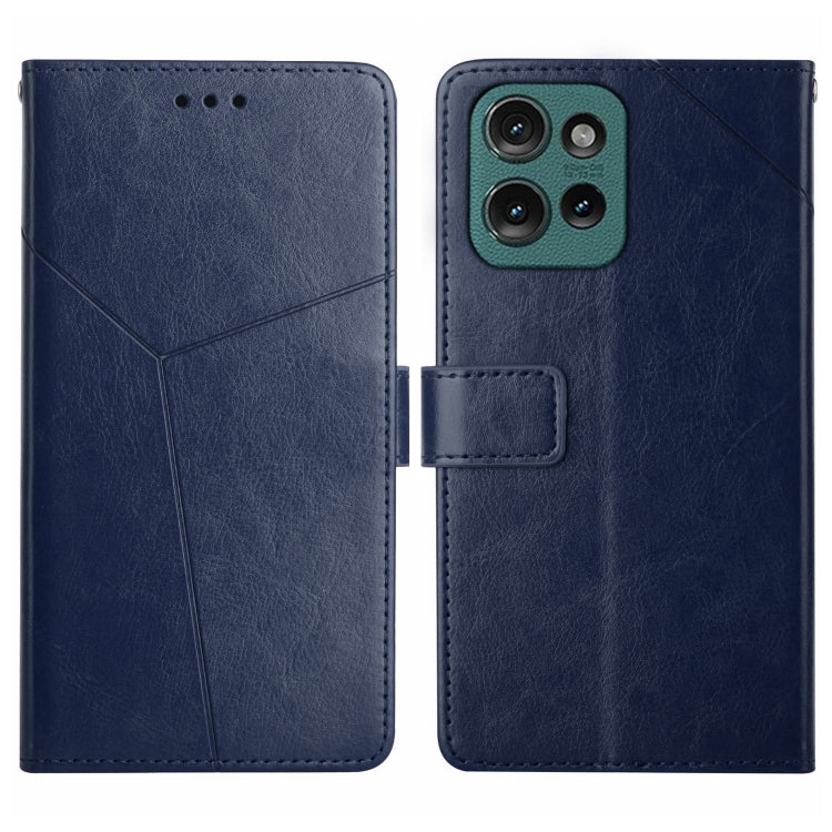 Funda de Cuero con Relieve y Costuras para Motorola Moto G 5G (2025) (Azul)