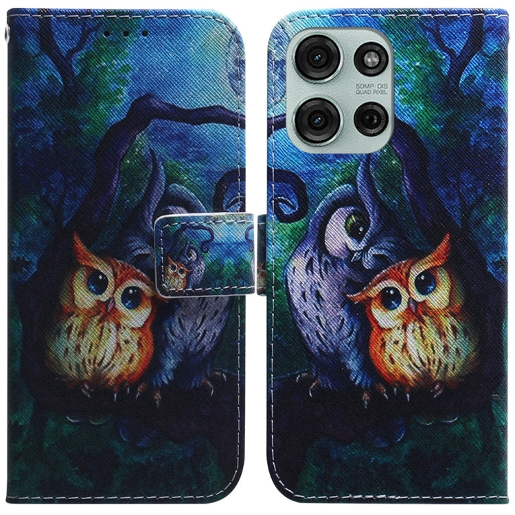 Funda de Cuero con Tapa para Motorola Moto G75 5G con Dibujo Búho Pintura al Óleo
