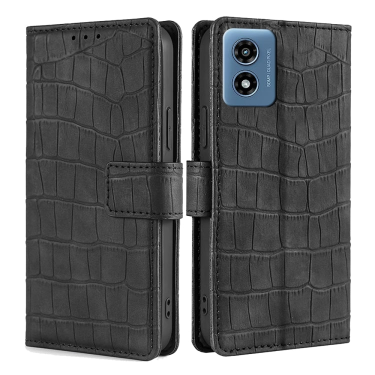 Funda de Piel con Cierre Magnético para Motorola Moto G 5G (2024) (Negro) Diseño Cocodrilo