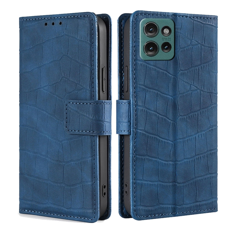 Funda de Piel con Cierre Magnético y Diseño de Cocodrilo para Motorola Edge 50 5G (Azul)
