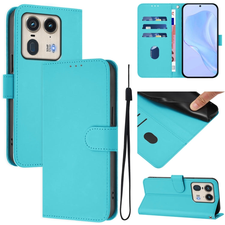 Funda de Piel Sintética con Cordón para Motorola Edge 5G (2024) (Azul Cielo)