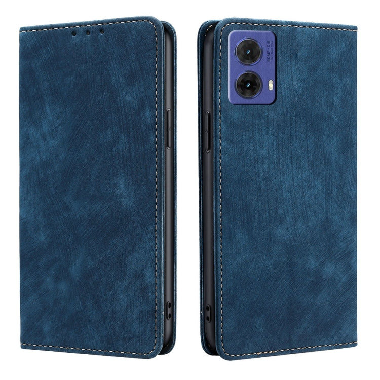 Funda de Cuero Magnética con Cepillo Antirrobo RFID para Motorola Edge 50 Ultra (Azul)