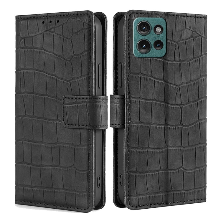 Funda de Piel con Cierre Magnético y Tacto Cocodrilo para Motorola Edge 50 5G (Negra)