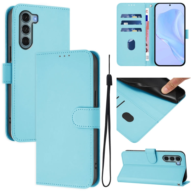 Funda de Piel Sintética con Cordón para Motorola Edge 30 (Azul Cielo)