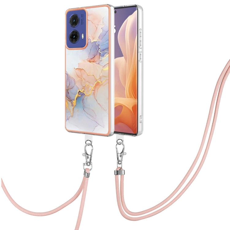 Estuche TPU Motorola Moto G85 a Prueba de Golpes con Patrón Galvanoplastia y Cordón (Mármol Blanco)