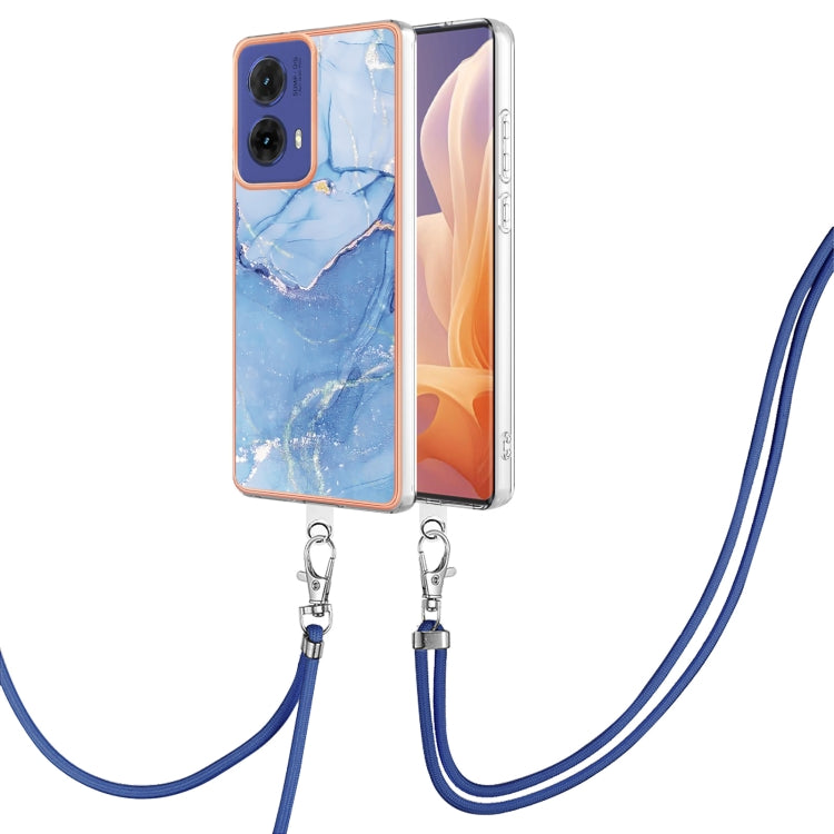 Estuche para Teléfono Motorola Moto G85 con Imd Doble Cara y Galvanoplastia Mármol con Cordón (Azul)