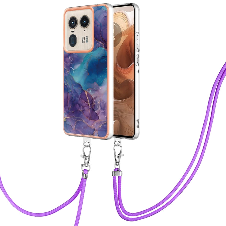 Funda Teléfono Motorola Edge 50 Ultra Imd Doble Cara Galvanoplastia Mármol con Cordón (Púrpura)