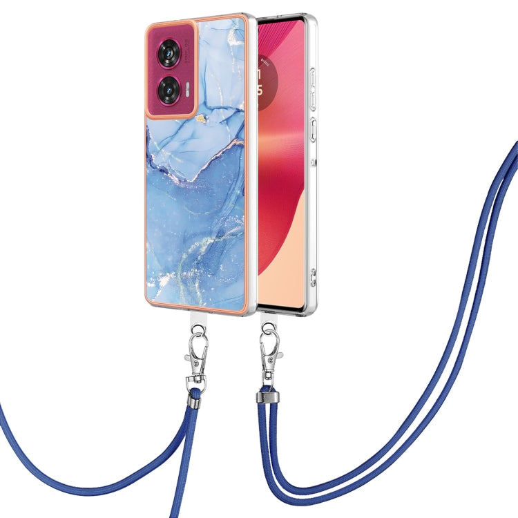 Funda para Teléfono Motorola Edge 50 Fusion con Imd Doble Cara Galvanoplastia Mármol y Cordón (Azul)