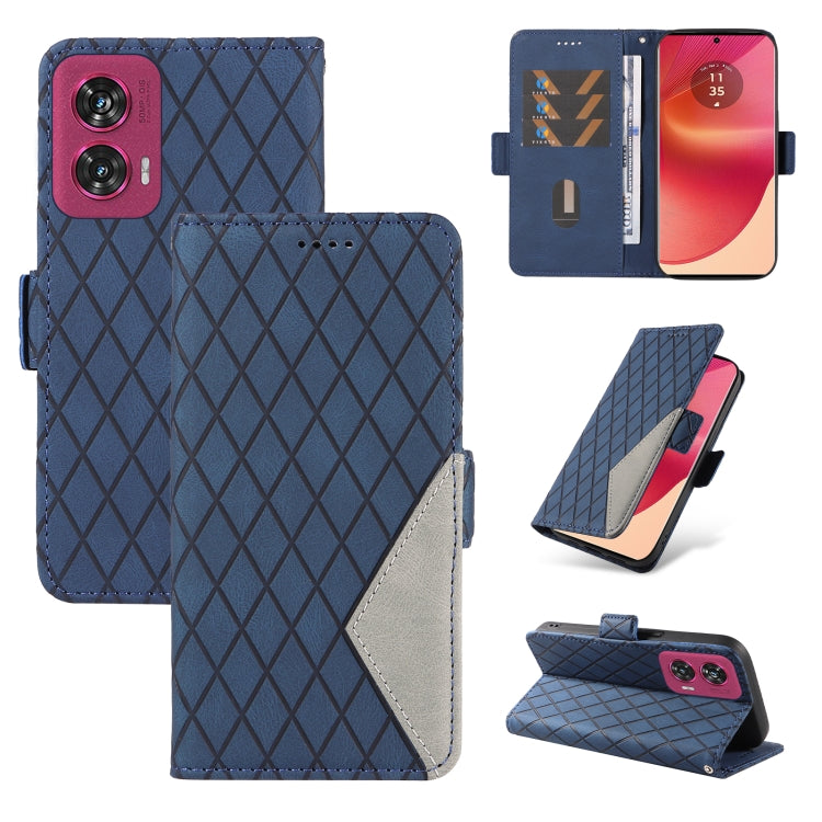 Funda para Motorola Edge 50 Fusion de Cuero con Entramado Rómbico de Dos Colores (Azul)