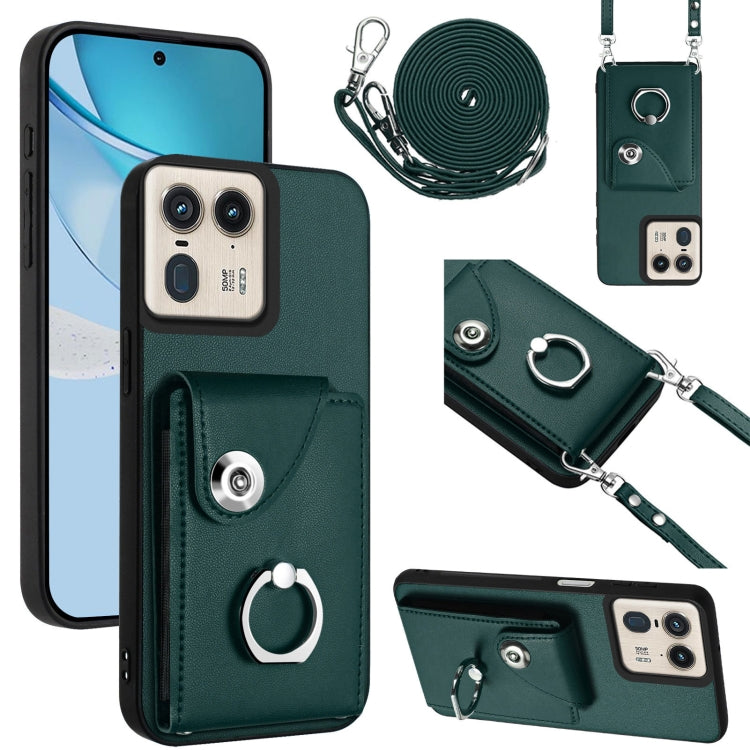 Funda para Motorola Moto X50 Ultra con Organ Card Bag y Ring Holder con Cordón Largo (Verde)