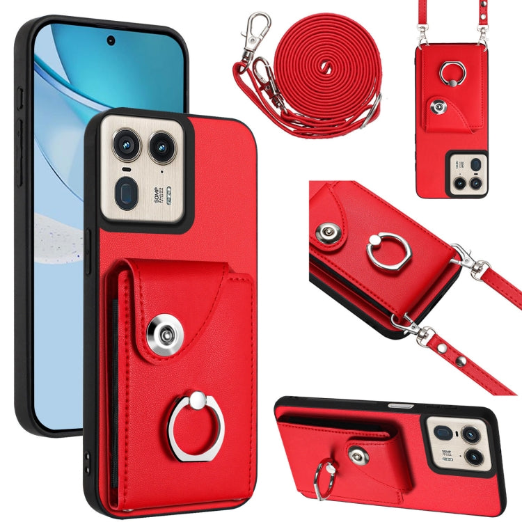 Funda para Motorola Moto X50 Ultra con Organ Card Bag y Ring Holder con Cordón Largo (Rojo)