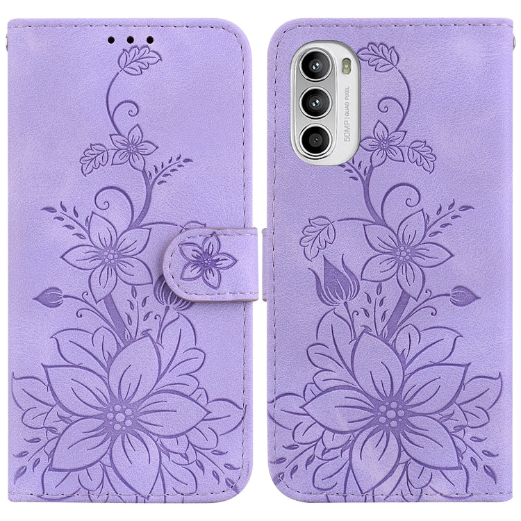Funda de Cuero con Relieve Lily para Motorola Moto G 2022 (Púrpura)
