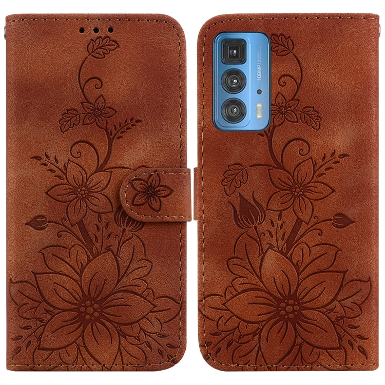Funda de Cuero para Motorola Edge 20 Pro Lily con Relieve (Marrón)