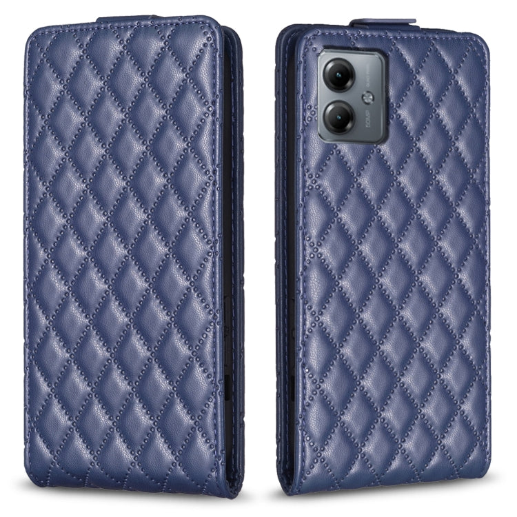 Funda de Cuero para Motorola Moto G14 4G con Tapa Vertical y Diseño Diamond Lattice (Azul)