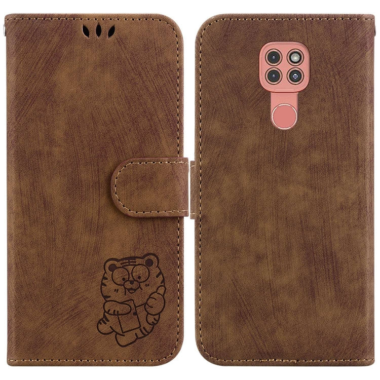 Funda para Motorola Moto E20 E30 E40 de Cuero con Relieve Little Tiger (Marrón)