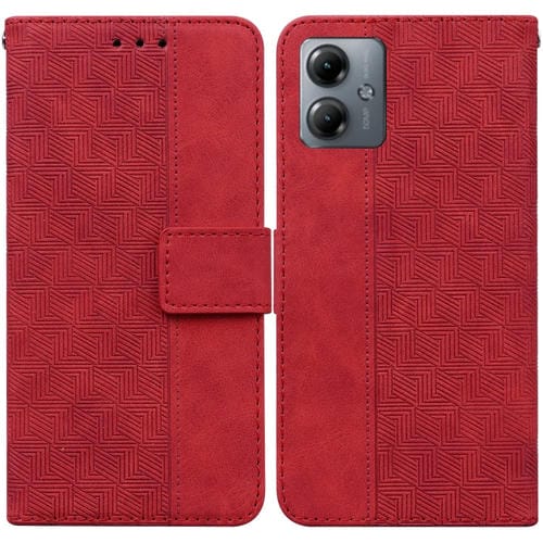 Funda de Cuero para Motorola Moto G14 con Relieve Geométrico (Rojo)