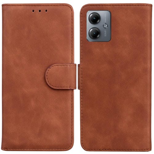 Funda de Cuero con Tapa para Motorola Moto G14 Skin Feel Pure Color (Marrón)
