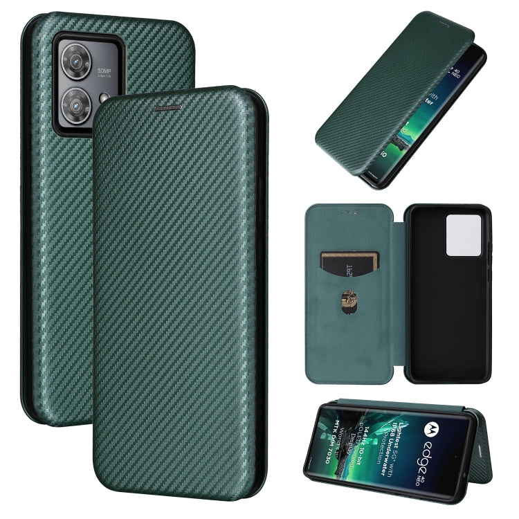 Funda de Cuero para Motorola Edge 40 Neo con Tapa y Textura de Fibra de Carbono (Verde)