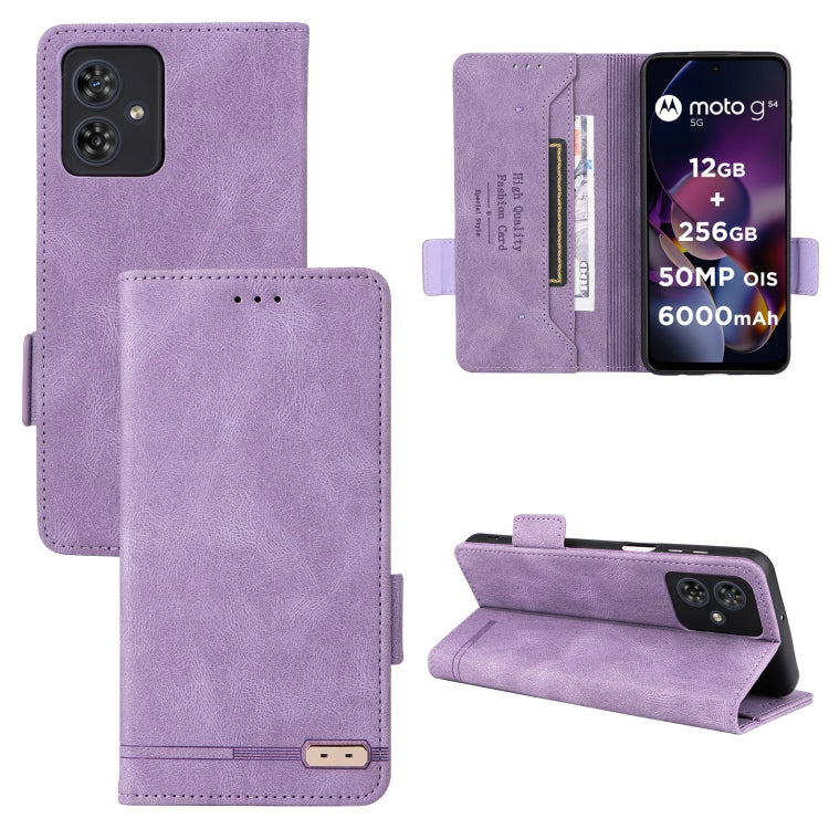 Funda de Cuero para Motorola Moto G54 5G con Cierre Magnético (Púrpura)