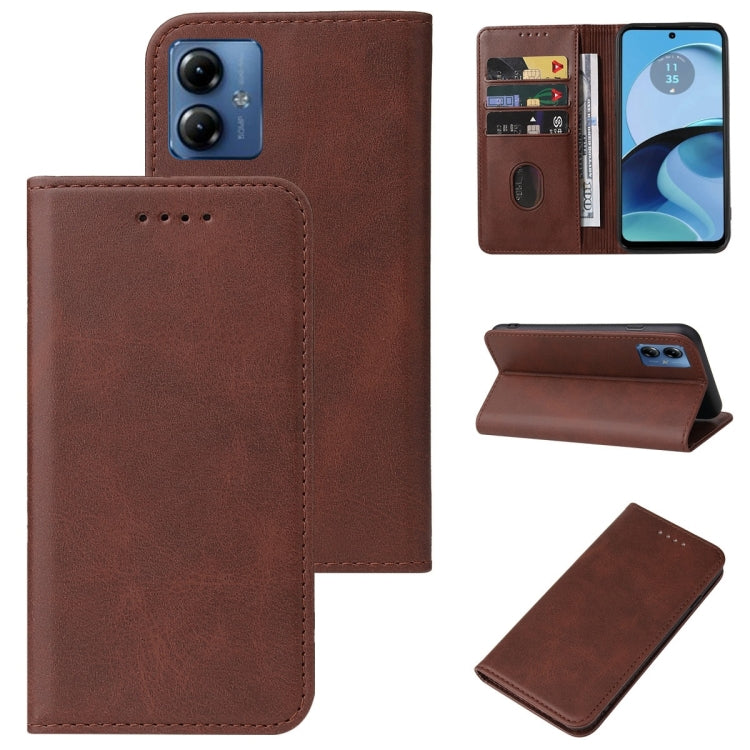 Funda de Cuero para Motorola Moto G14 con Cierre Magnético (Marrón)