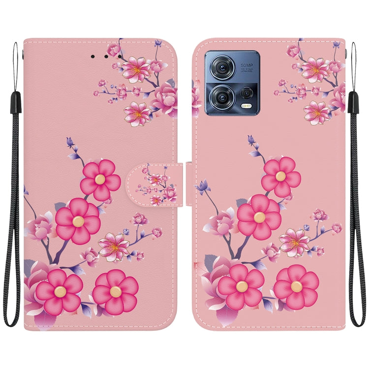 Funda de Cuero Motorola Moto S30 Pro 5G con Dibujo Coloreado y Textura de Cristal (Flores de Cerezo)