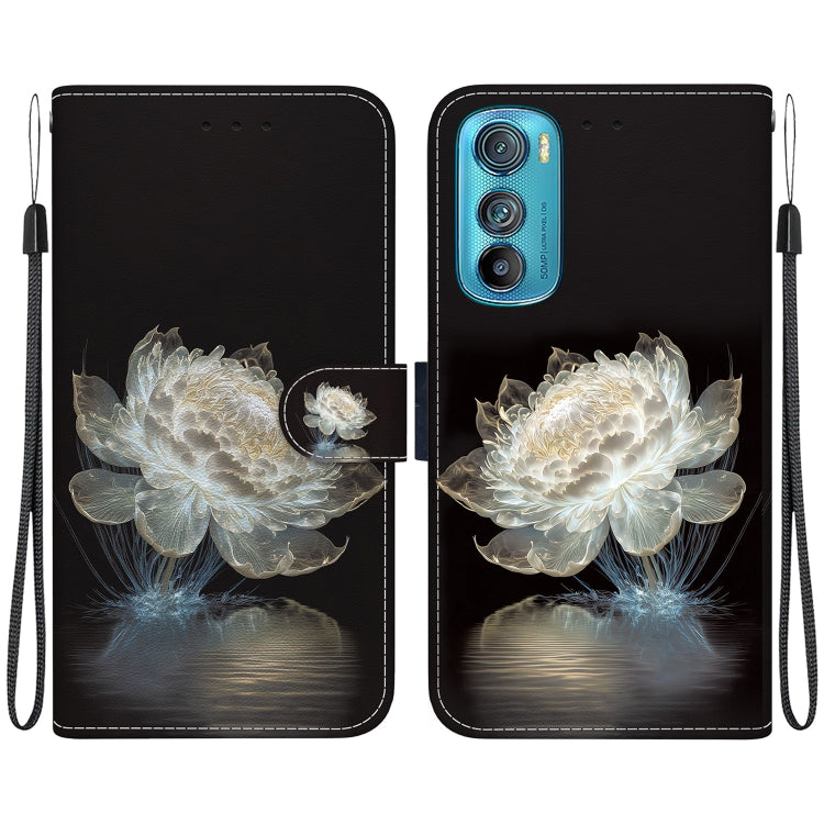 Funda de Cuero para Motorola Edge 30 con Dibujo Coloreado y Textura de Cristal (Peonía de Cristal)