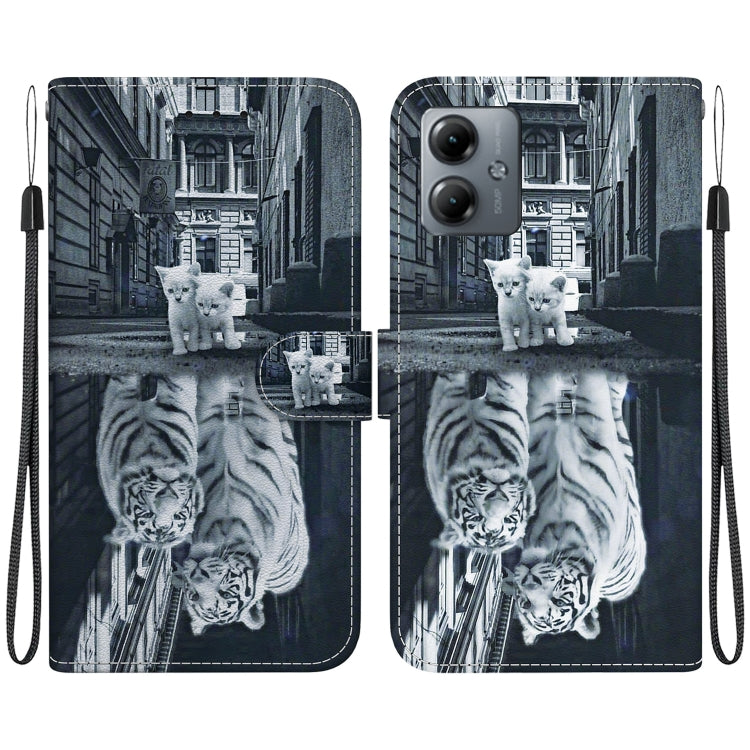 Funda de Cuero para Motorola Moto G14 con Dibujo Coloreado y Textura de Cristal (Reflejo de Tigre)
