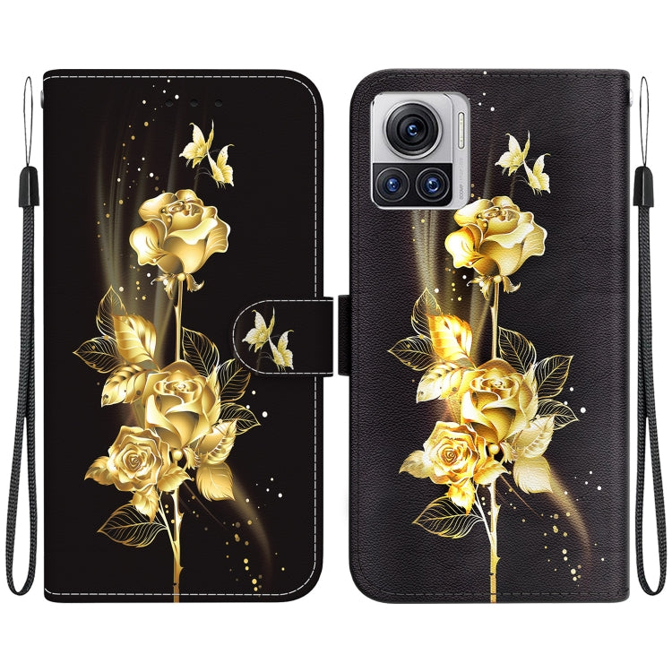 Funda de Cuero para Motorola Moto X30 Pro 5G con Dibujo y Textura de Cristal (Mariposa Dorada Rosa)