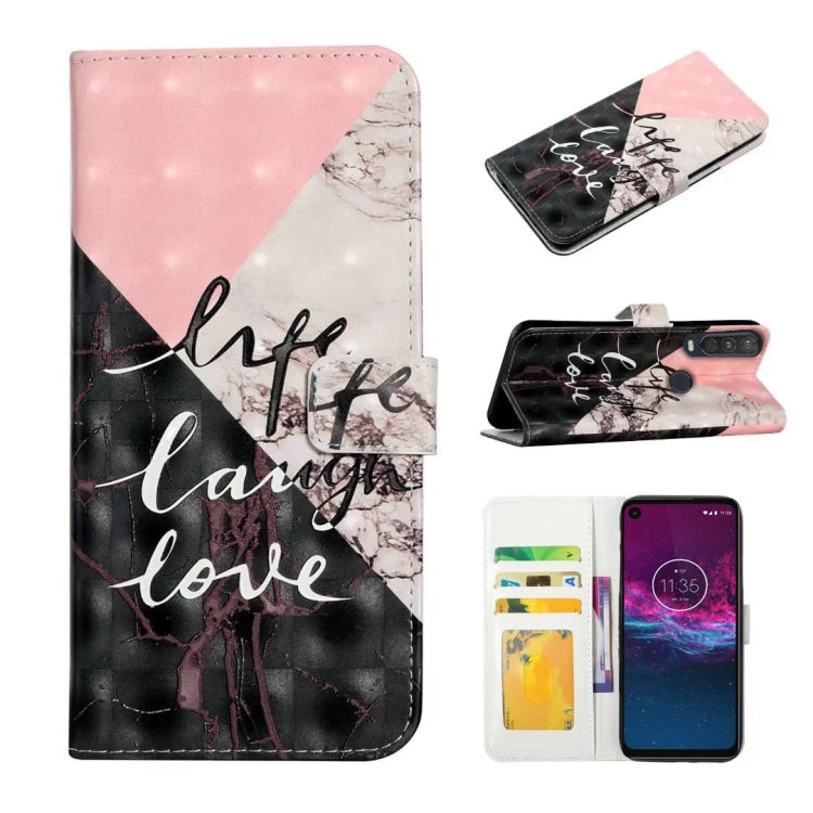 Funda de Cuero para Motorola One Action con Dibujo 3D en Relieve al Óleo (Costura de Mármol)