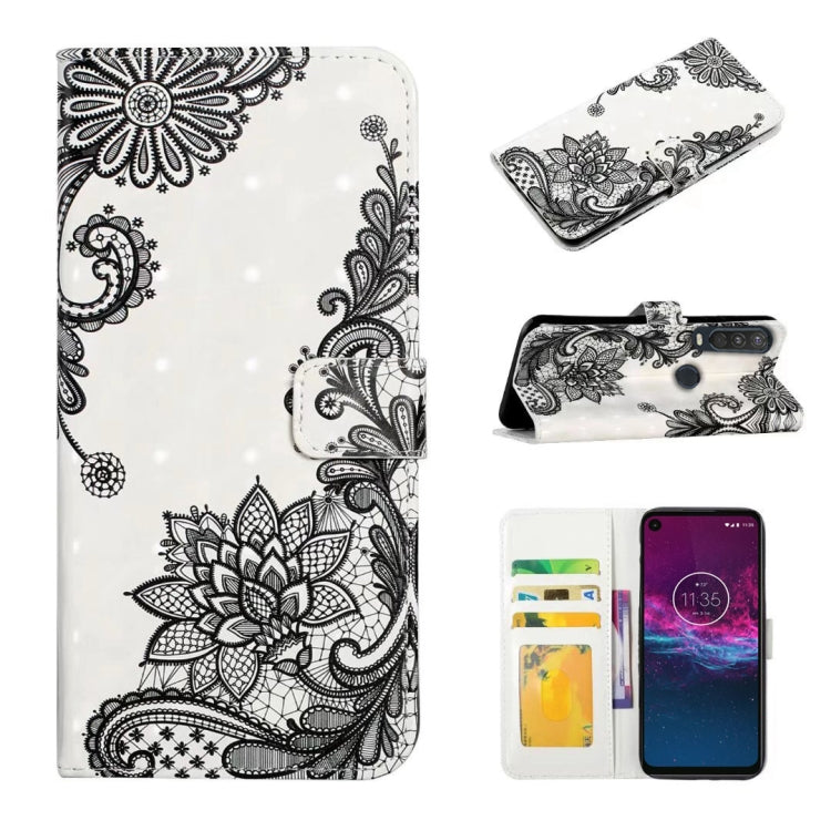 Funda de Cuero para Motorola One Action con Dibujo 3D en Relieve al Óleo (Flor de Encaje)