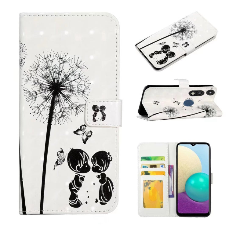 Funda de Cuero para Motorola Moto E32 con Dibujo 3D en Relieve al Óleo (Pareja de Diente de León)