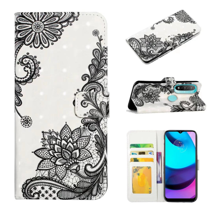 Funda de Cuero para Motorola Moto E20 E30 E40 con Dibujo 3D en Relieve al Óleo (Flor de Encaje)
