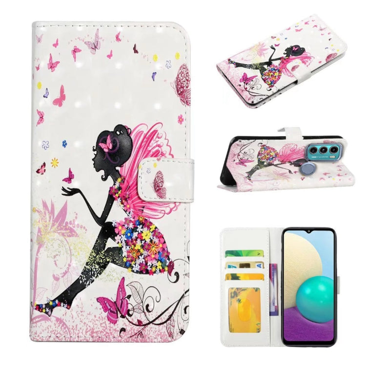 Funda de Teléfono Motorola Moto G22 Cuero con Dibujo 3D en Relieve al Óleo (Hada de Flores)