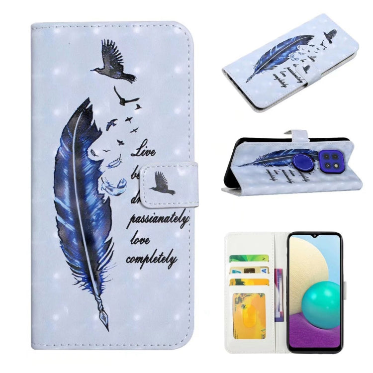 Funda de Cuero para Motorola Moto E32 con Dibujo 3D en Relieve al Óleo (Pluma Azul)
