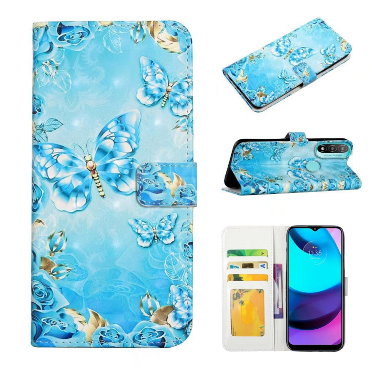 Funda de Cuero para Motorola Moto E22 con Dibujo 3D en Relieve al Óleo (Mariposas Azules)