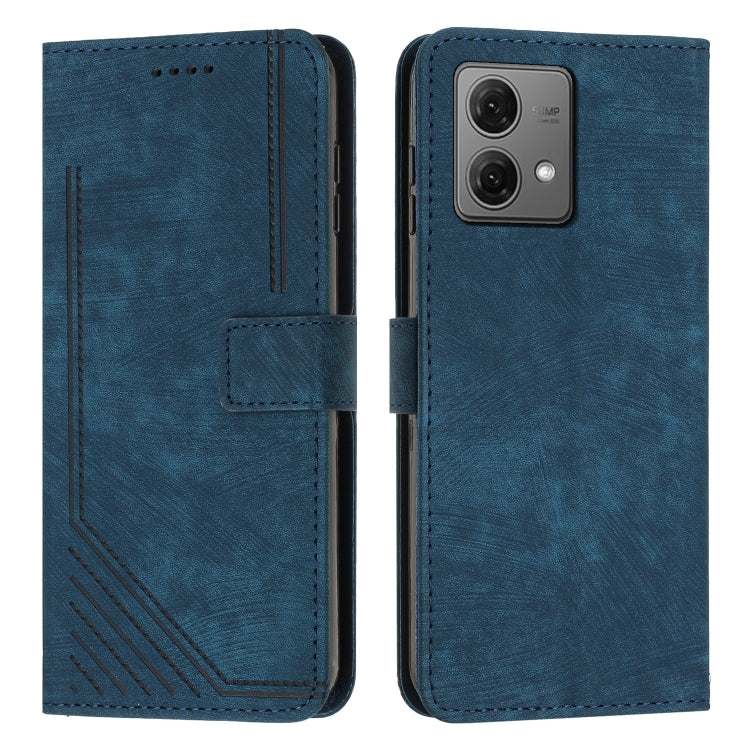 Funda de Cuero Skin Feel para Motorola Moto G84 con Patrón de Rayas y Cordón (Azul)