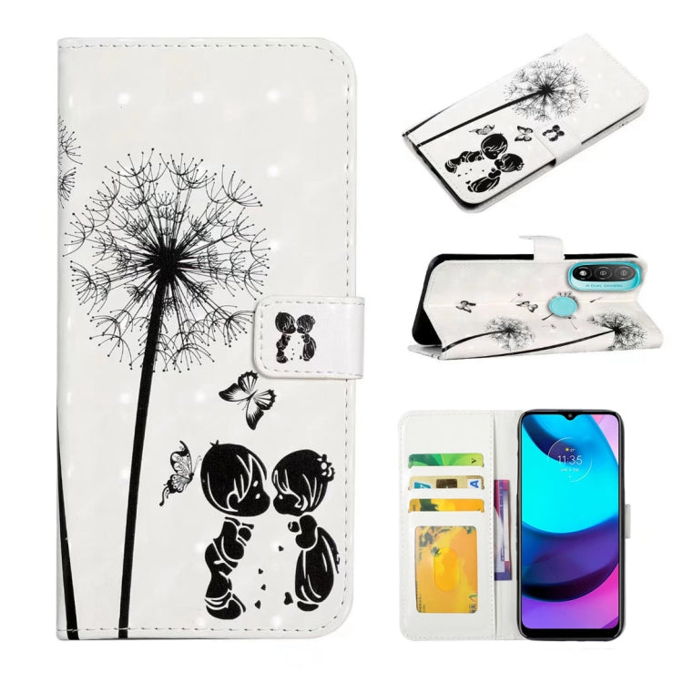 Funda para Motorola Moto E20 E30 E40 de Cuero con Dibujo 3D en Relieve (Pareja de Diente de León)