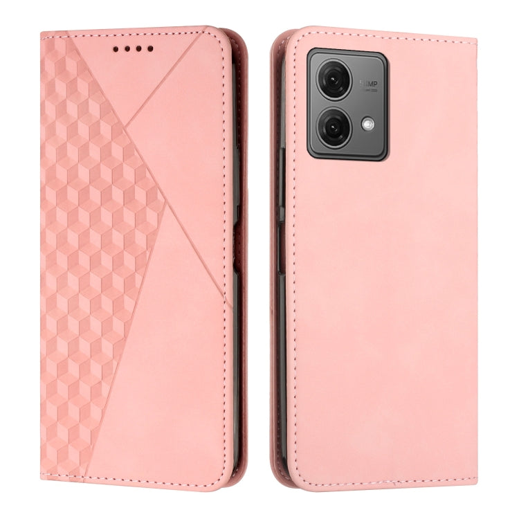 Funda de Cuero Magnética para Motorola Moto G84 Diamond Splicing Skin Feel (Oro Rosa)