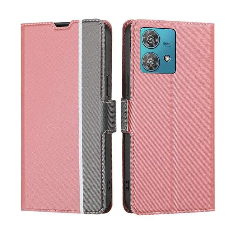 Funda de Cuero para Motorola Edge 40 Neo 5G con Botón Lateral y Textura de Sarga (Rosa)
