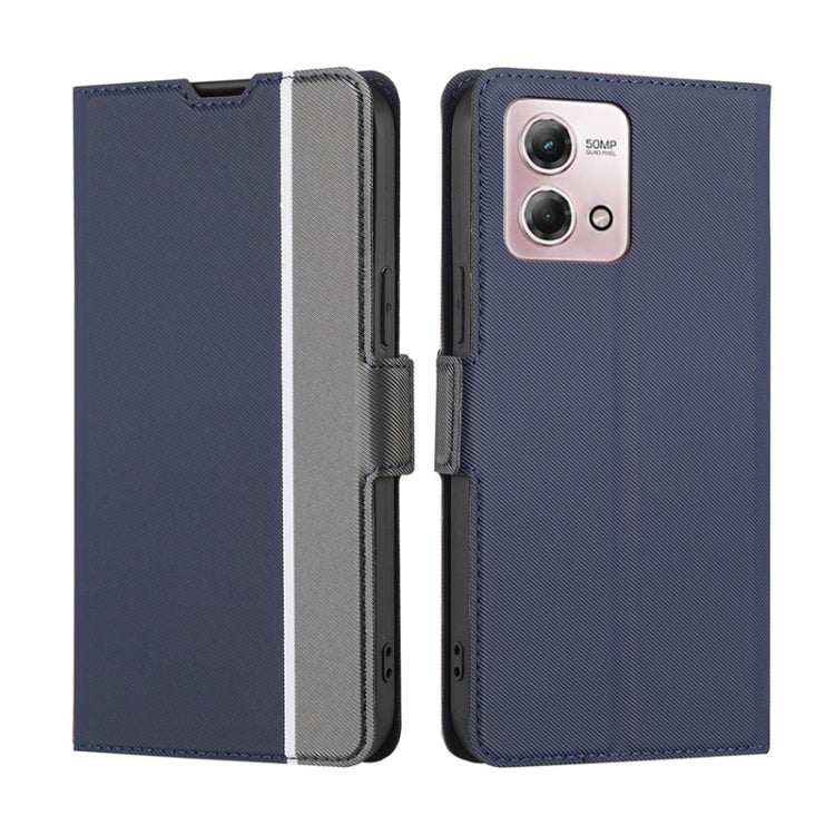 Funda de Cuero para Motorola Moto G84 5G con Botón Lateral y Textura de Sarga (Azul)