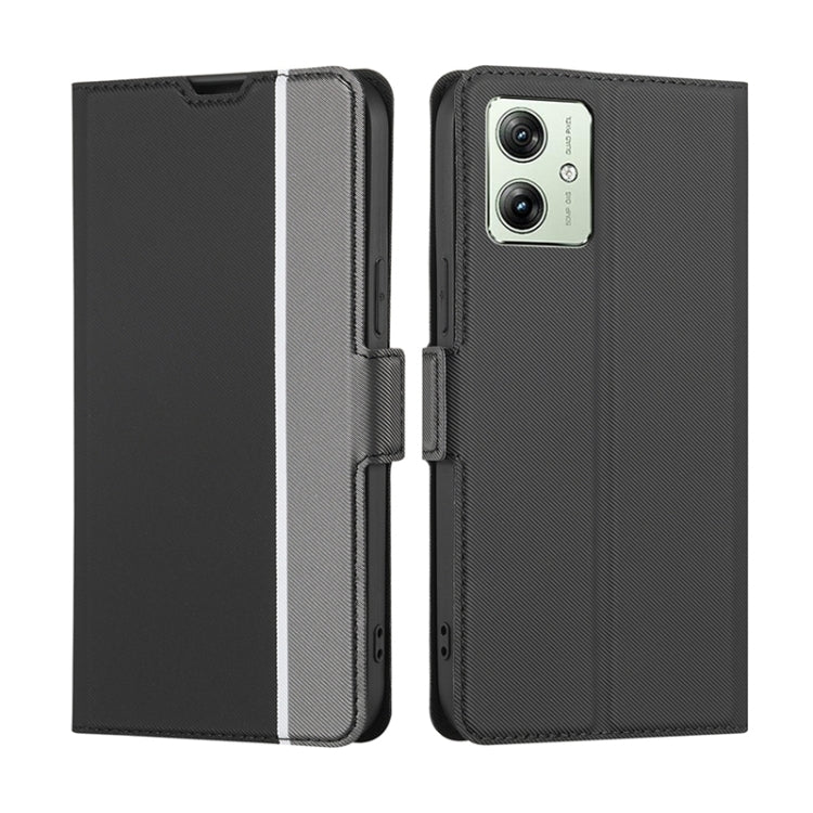 Funda de Cuero para Motorola Moto G54 5G Eu Edition con Botón Lateral y Textura de Sarga (Negro)