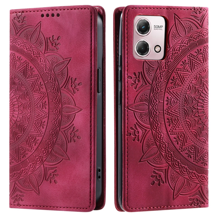 Estuche para Motorola Moto G Power 5G 2023 de Cuero Magnético con Relieve de Tótem (Rojo)