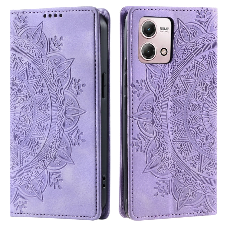 Funda de Cuero Magnética para Motorola Moto G84 Totem en Relieve (Púrpura)