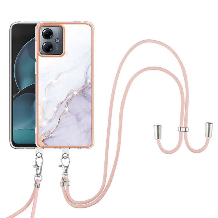 Estuche para Motorola Moto G14 IMD Doble Cara Mármol Galvanizado con Cordón (Blanco)