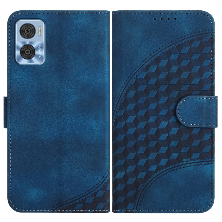 Funda de Cuero para Motorola Moto E22 Yx0060 con Relieve y Cabeza de Elefante con Cordón (Azul Real)