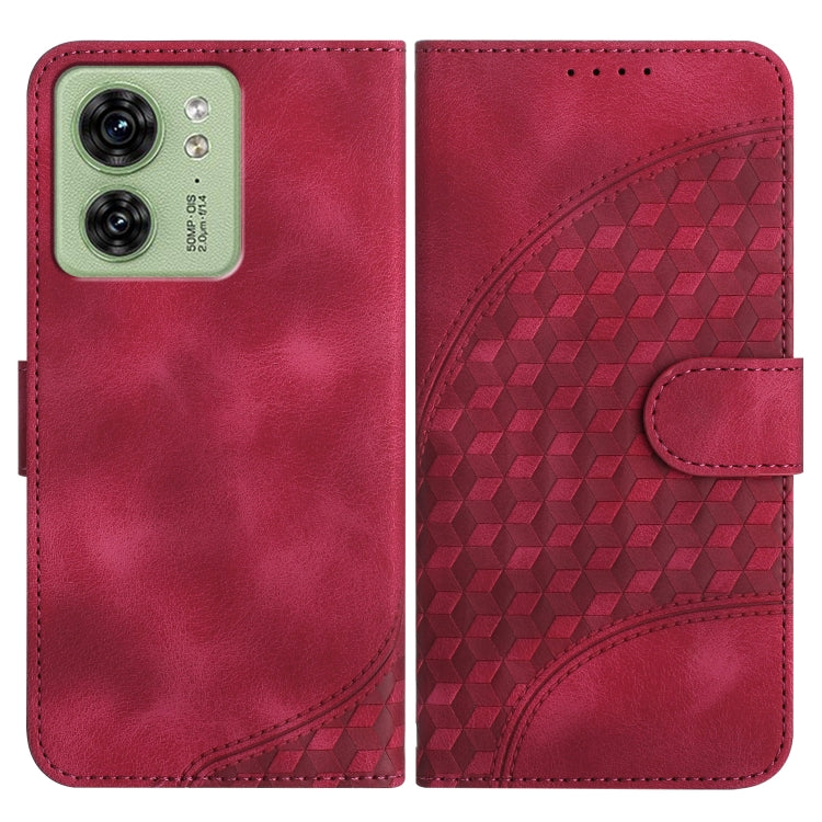 Funda de Cuero para Motorola Edge 40 Yx0060 con Relieve y Cabeza de Elefante con Cordón (Rojo Rosa)
