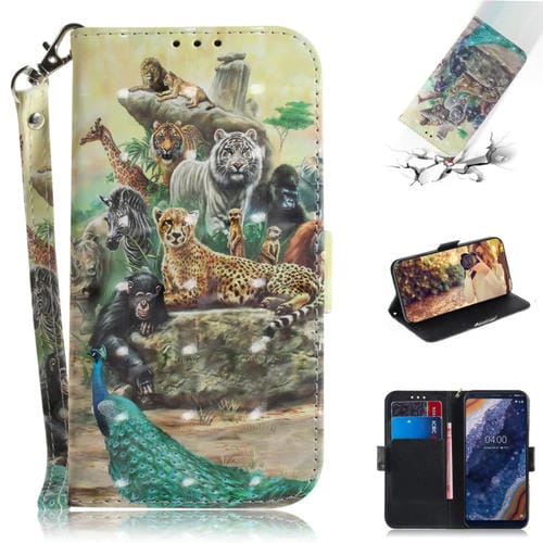 Estuche de Cuero con Tapa Horizontal y Animales 3D para Nokia 4.2 con Soporte y Ranuras