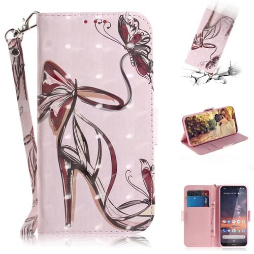 Estuche de Cuero con Tapa Horizontal y Soporte para Nokia 9 con Patrón 3D (Zapatos y Mariposa)