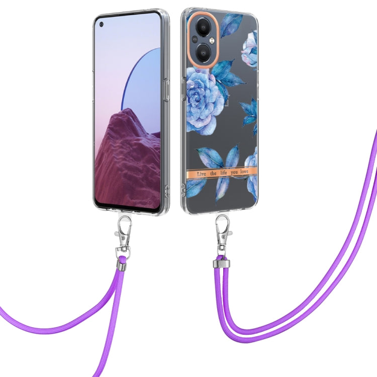 Funda TPU para OnePlus N20 5G Flowers Series con Cordón (Peony Blue)